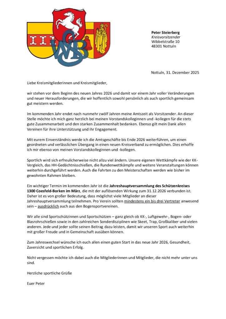 Ich wünsche allen Schützinnen und Schützen viel Erfolg und einen guten Verlauf aller Wettkämpfe.
